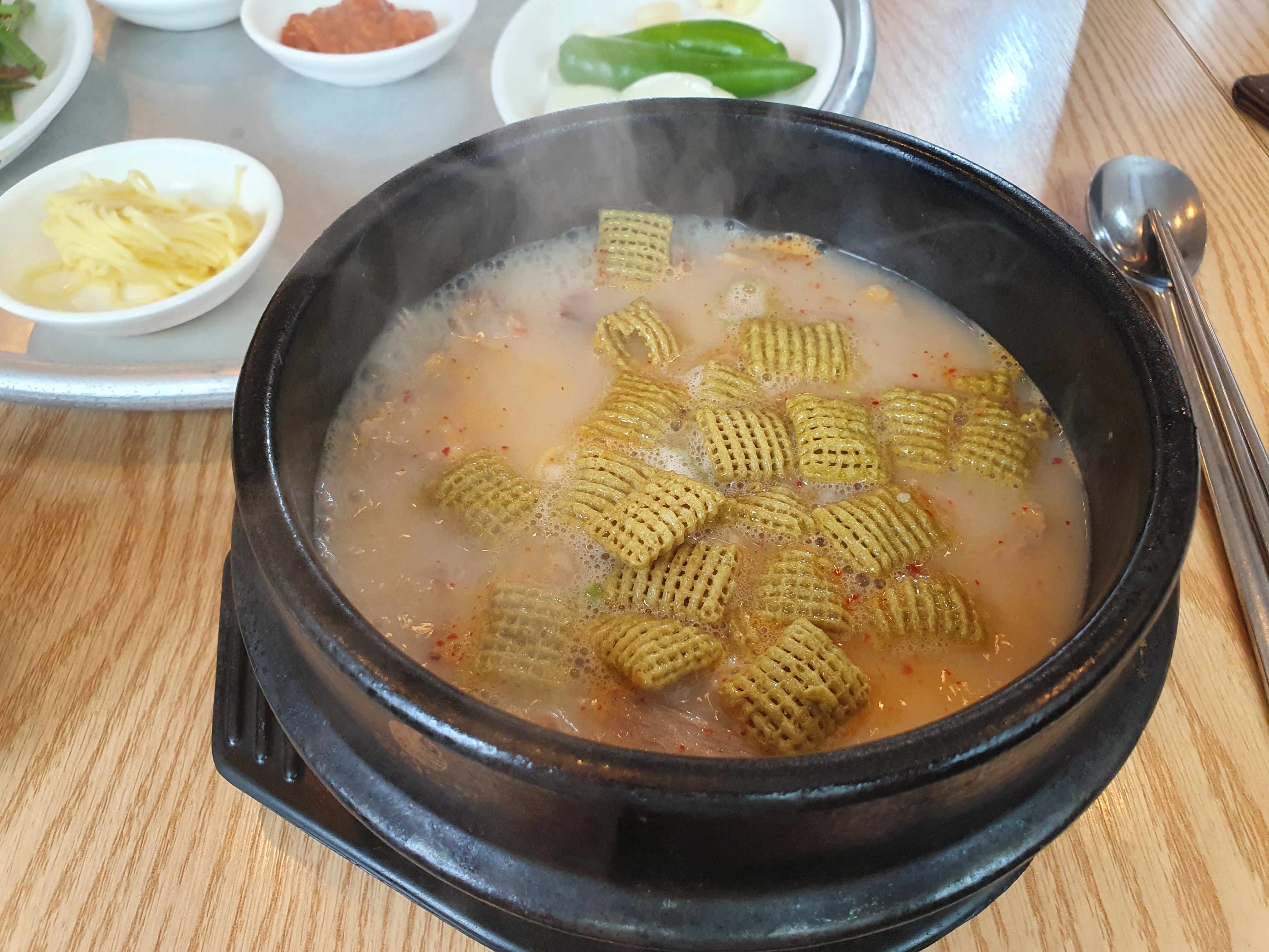 지난포스팅때 쓰고남은 파맛첵스를 국밥에 넣어 먹어봤다.