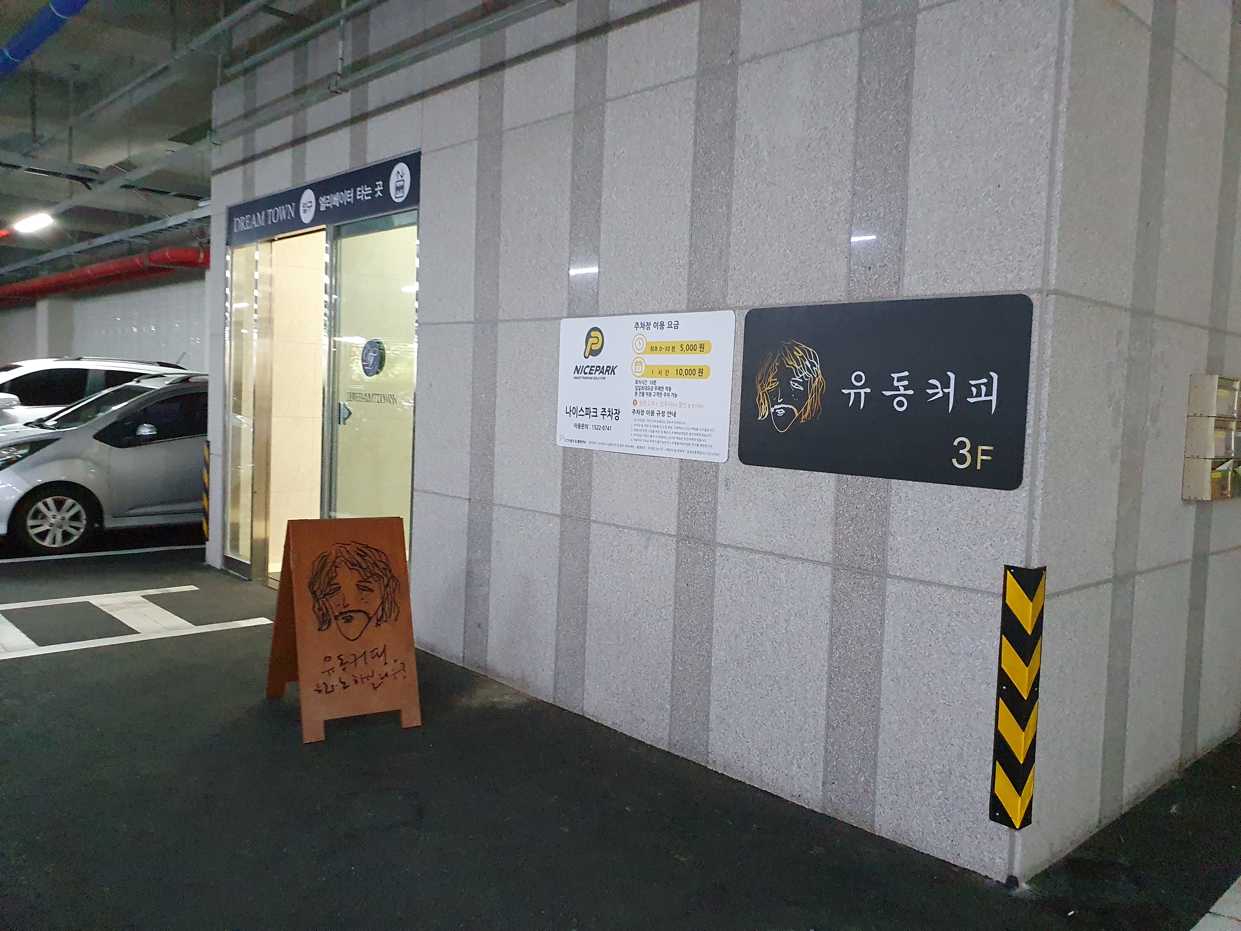 주차장에서 엘리베이터를 타고 3층으로가면 유동커피