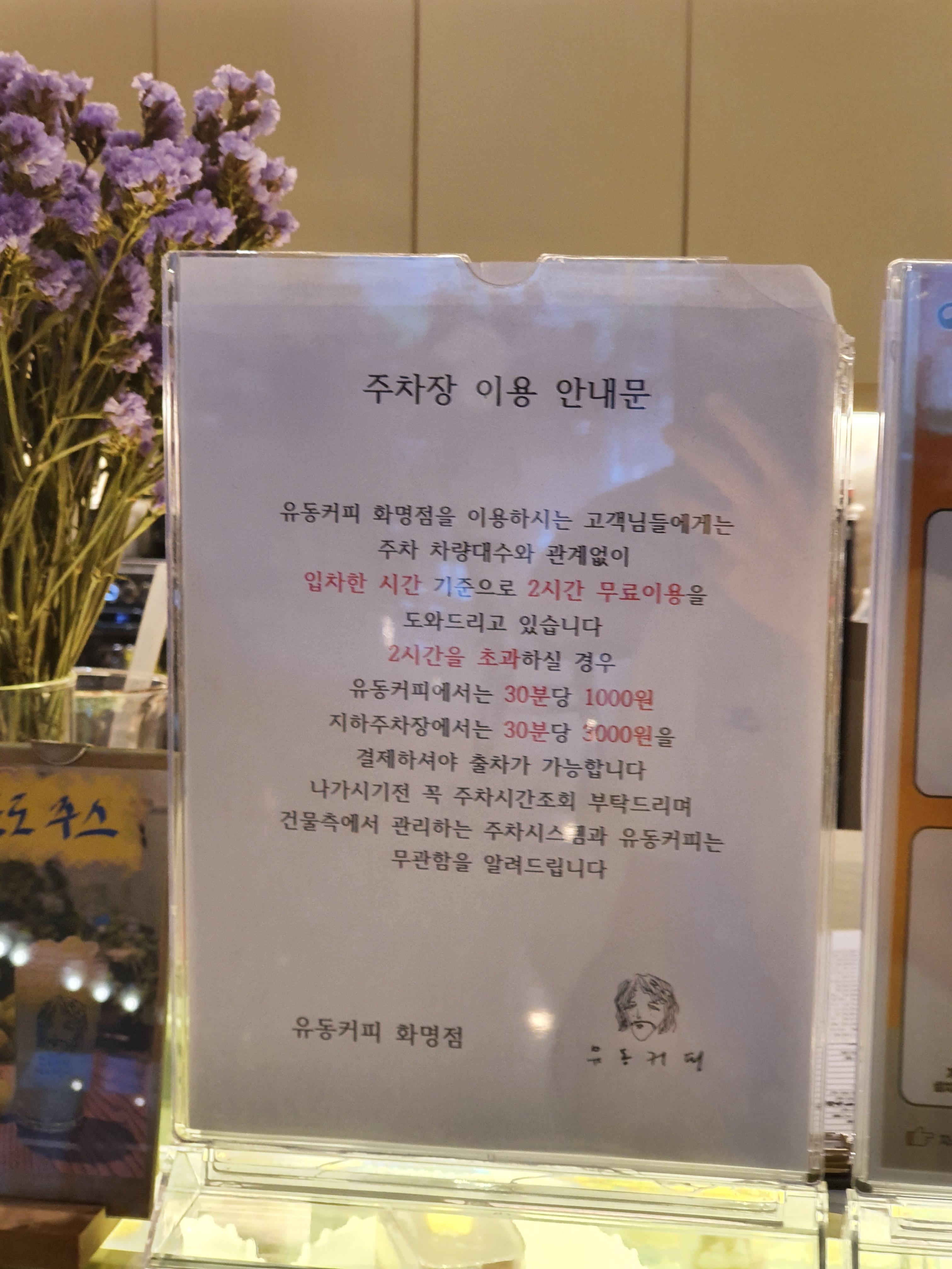 입차기준 2시간 무료이용이고 이후 30분당 2,000원인데 커피집에서 선결제시 30분당 1,000원이니 참고