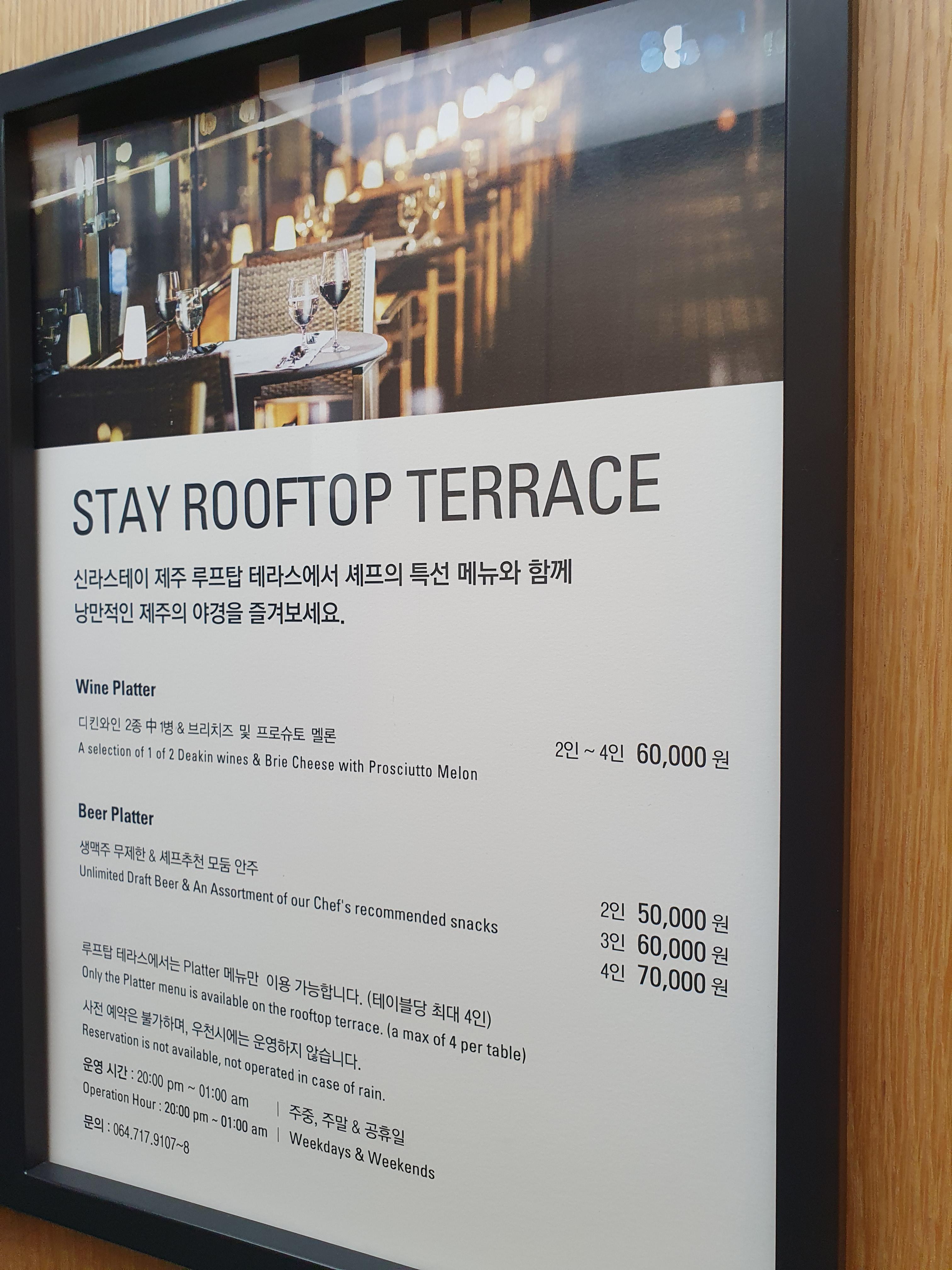 루프탑 라운지는 숙박한 당일에 근처 식당에서 저녁 겸 반주를 하고 들어와서 따로 가지는 못했다.