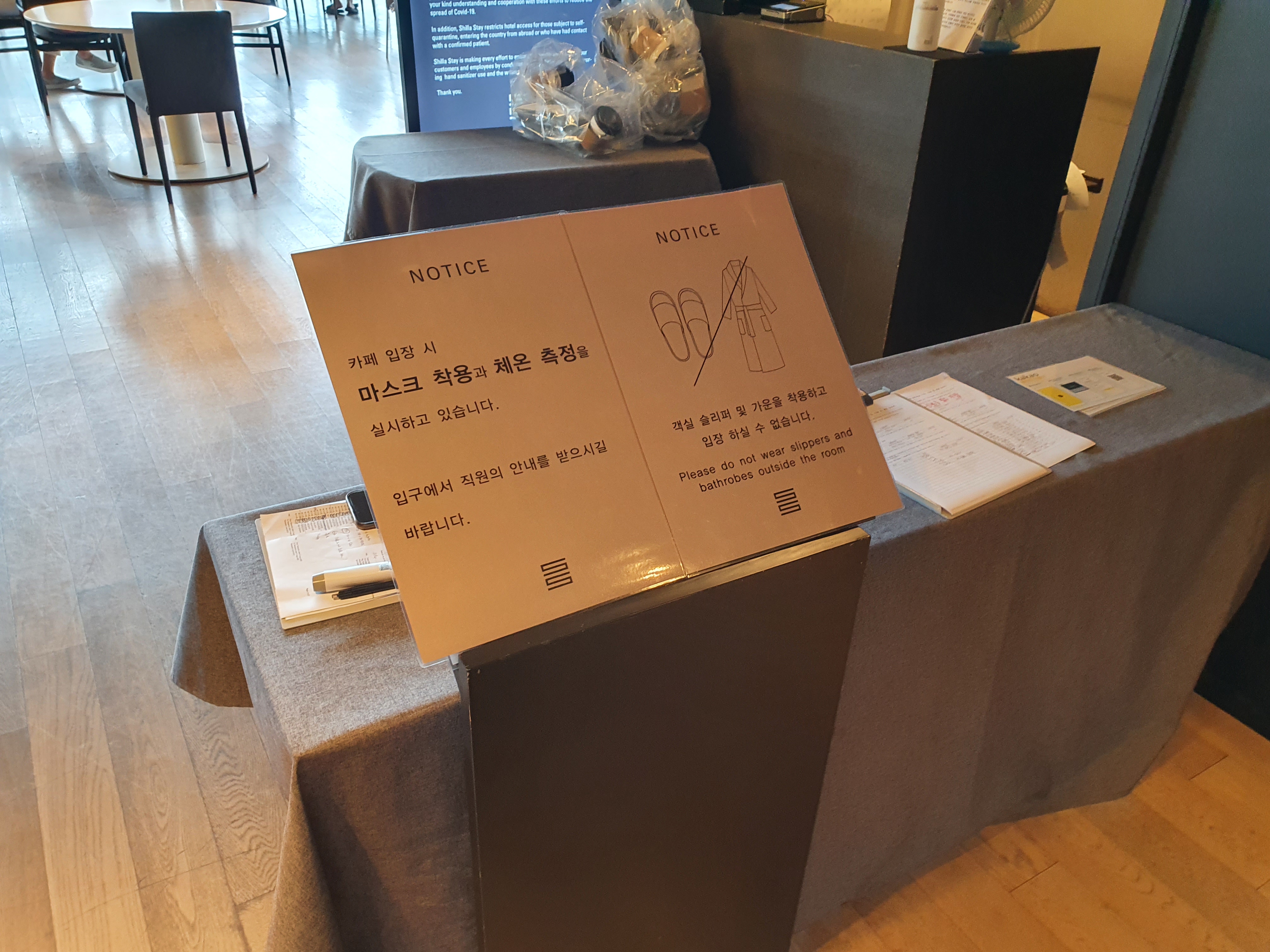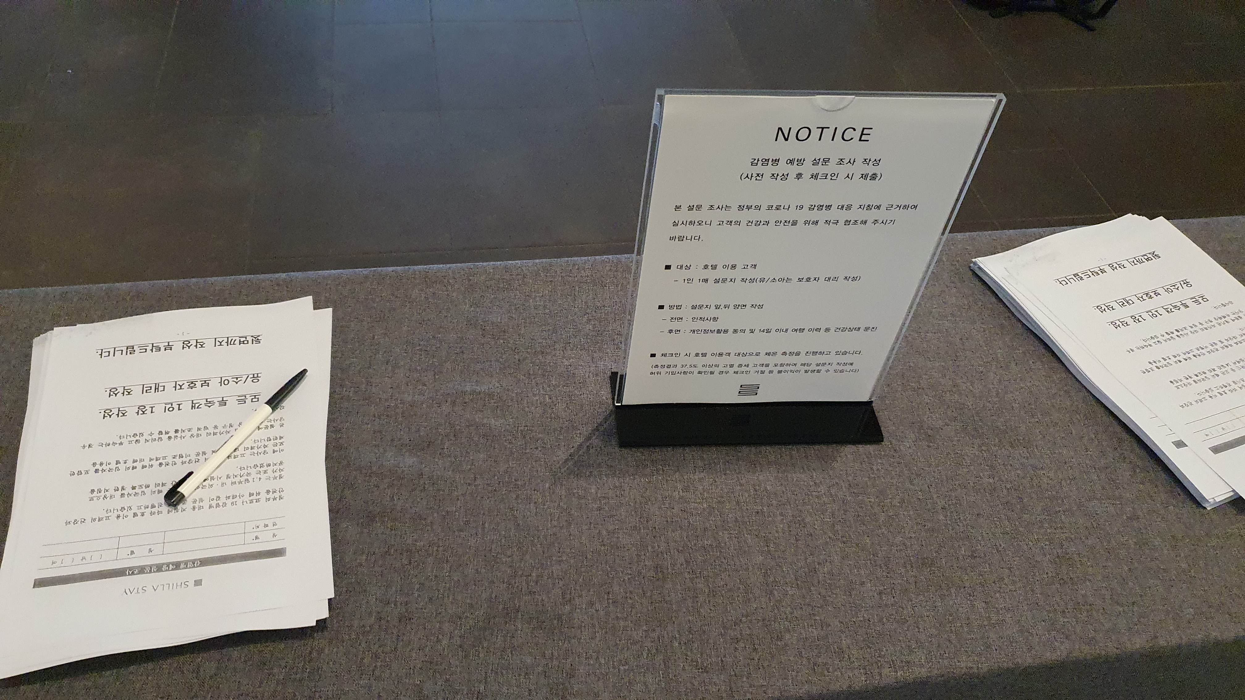방문시기에 코로나19 로 인해 개인문진표를 작성하고 체크인을 해야 했다.