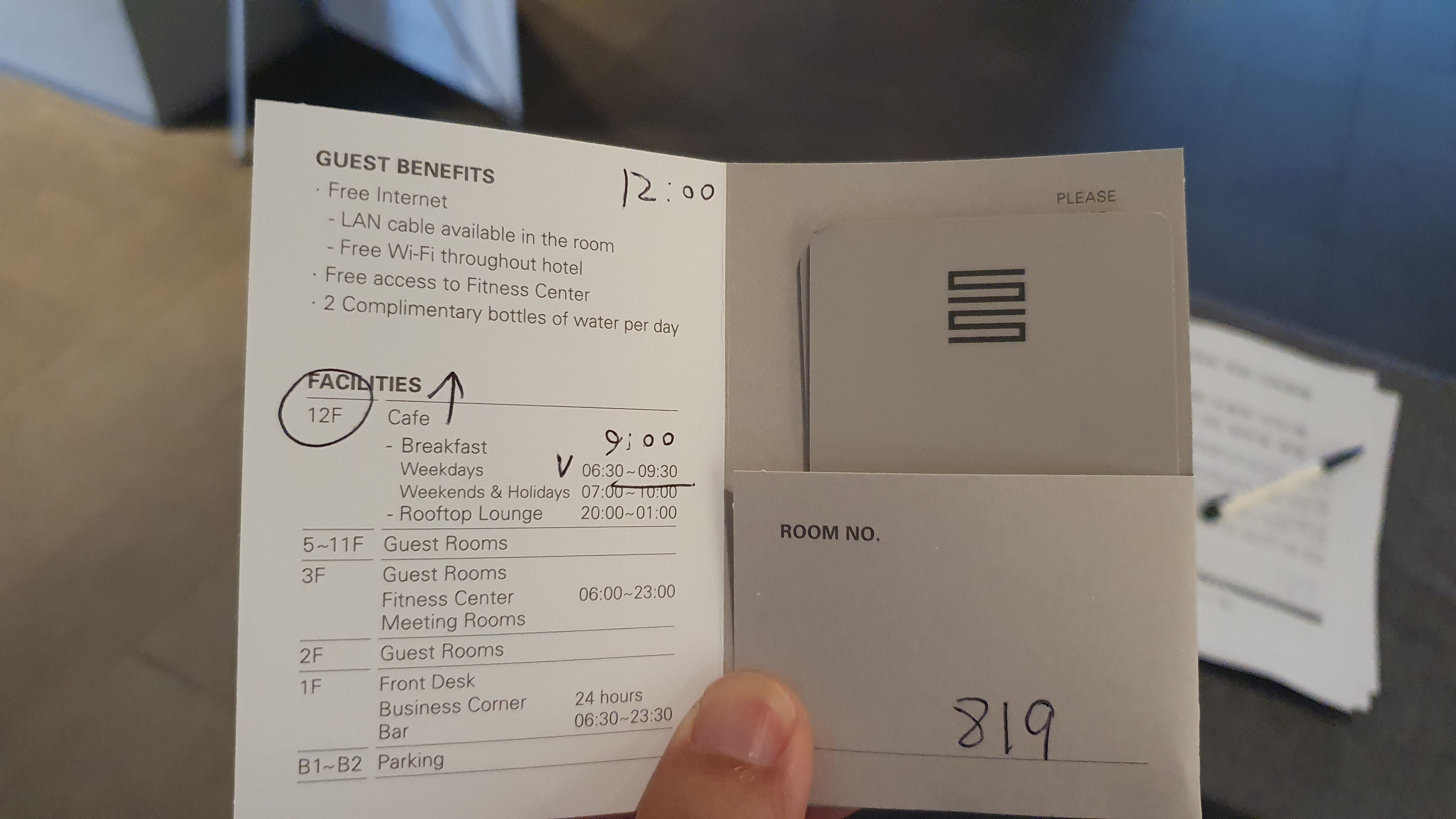 조식은 12층 카페에서 평일에는 06:30~09:30 까지 이용 가능하고, 마지막입장은 09:00까지 제한된다.