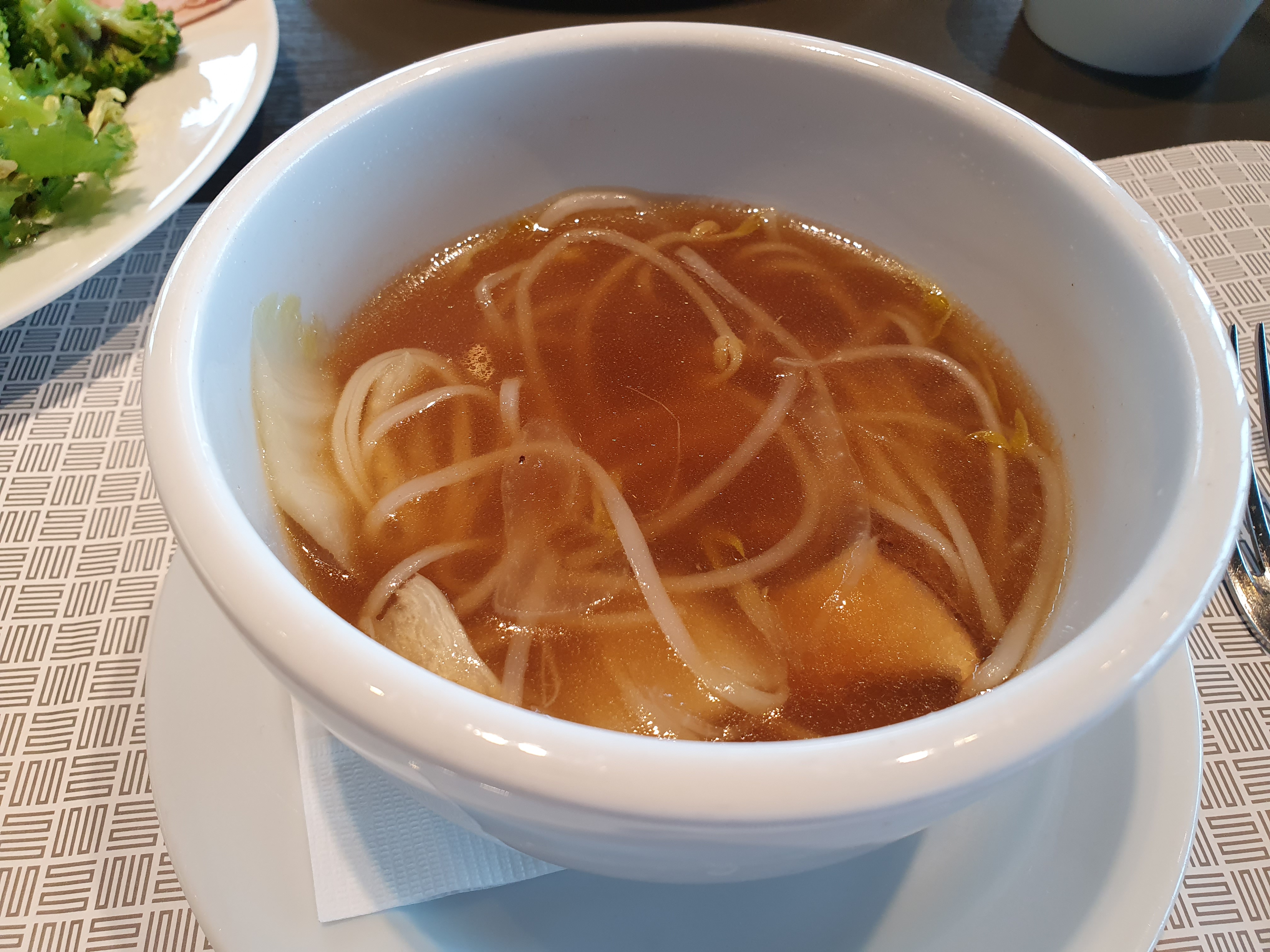 면/토핑을 먹을만큼 담으면, 직원이 육수를 부어준다.