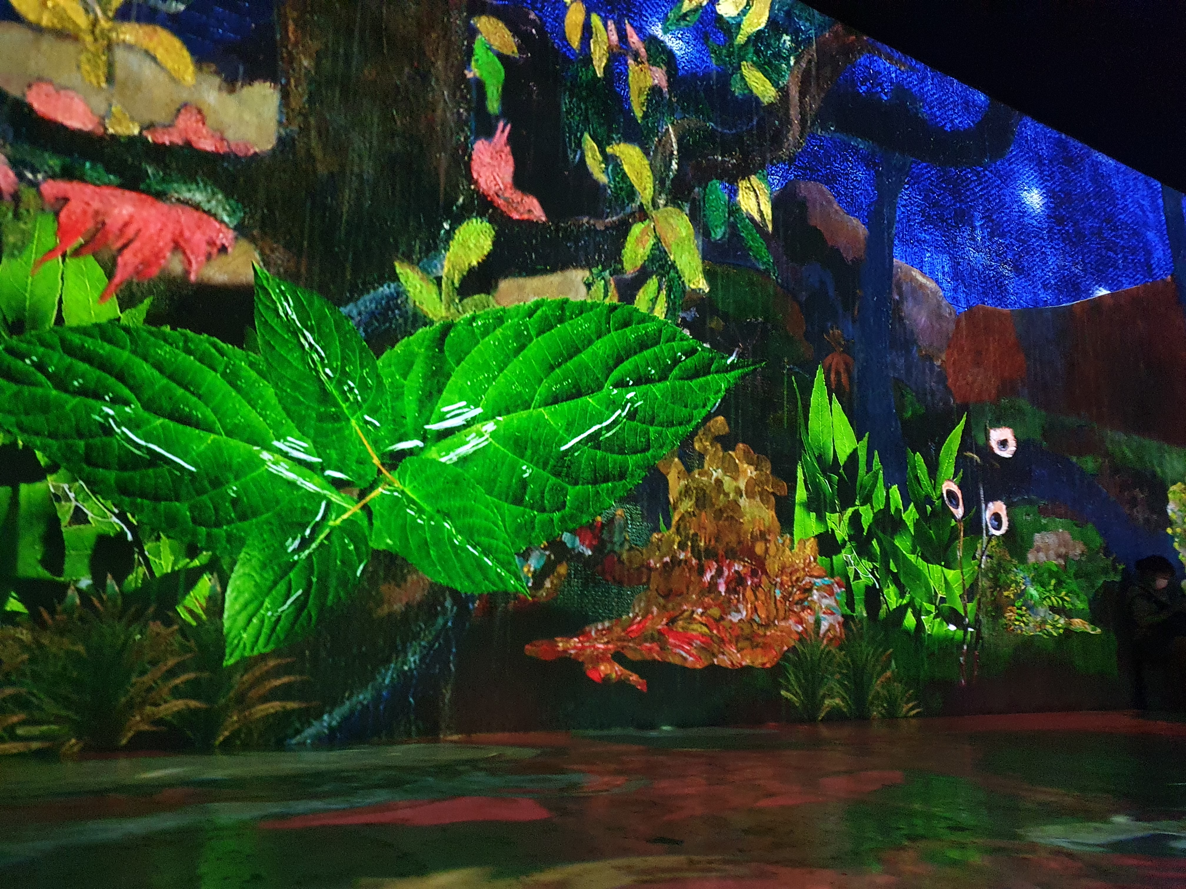건물로 들어가면 빔프로젝터로 영상이 건물 내벽으로 영사되면서 그림이 움직인다.