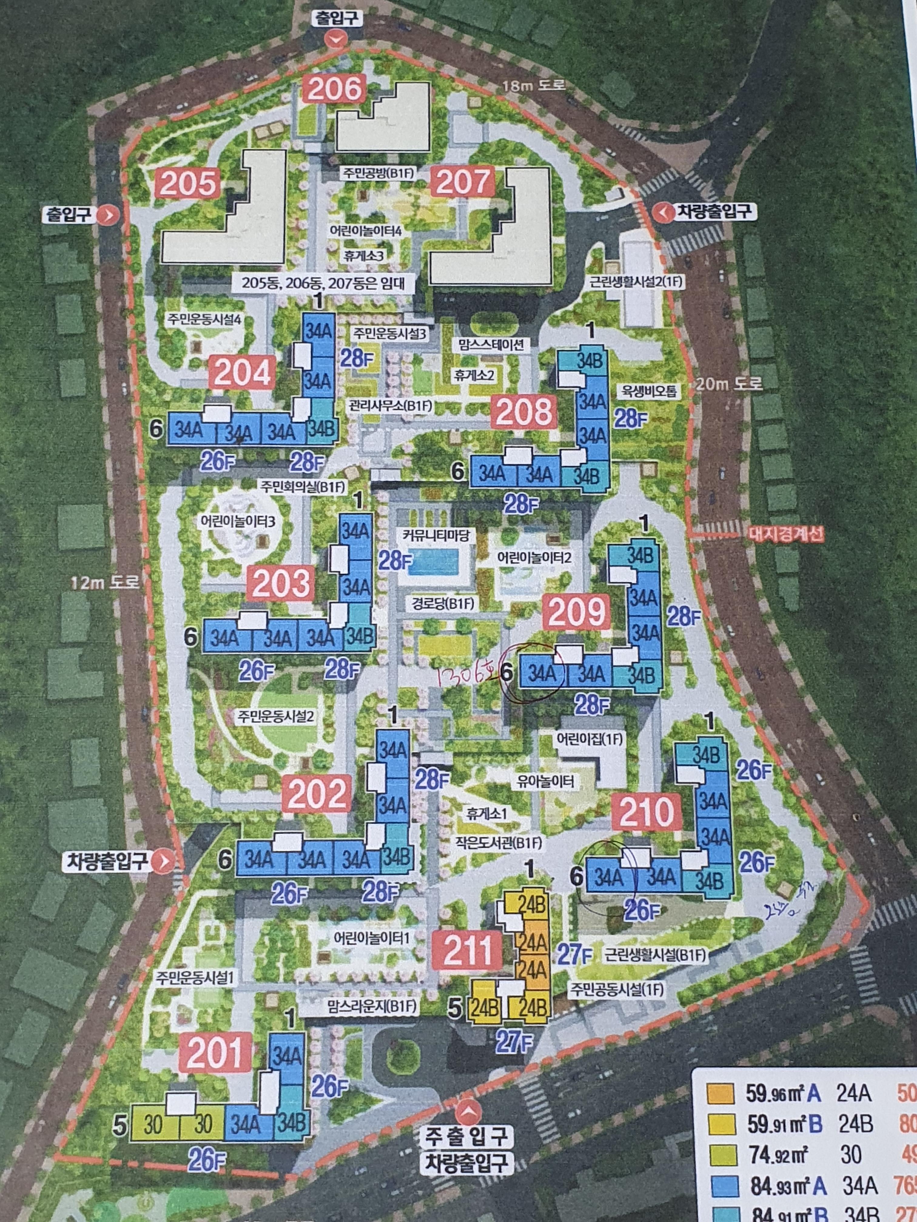 뷰에 대해서도 알아보자. 208~210라인의 1,2,3,4호 라인은 남동향으로 산을 바라본다. 반대로 201~204라인의 6호라인은 정면은 단지뷰이지만 측면으로 덕천시가지가 보인다. 여기서 말한 라인들은 로얄층을 가게되면 피가 제법 많이 붙는 경향을 보여준다.