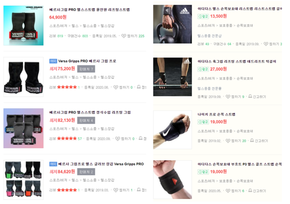 헬스를 어느정도 해서 장비를 알아보는 입문자의 경우 나이키 / 아디다스 / WSF와 같은 입문용 그립이나 저가브랜드 헬스장갑 등의 아이템들을 검색한다. 네이버 검색을 하면 가격대가 1만원~2만원대로 형성되어 있다. 베르사그립은 나도 올해 초에 6만4천원에 구매를하였고, 처음에 많은 고민을 했다. 헬스하는데 장갑이 6만원이라고? 하면서.. 입문용 그립이 아니기에 비싼감이 크게 다가온다.
