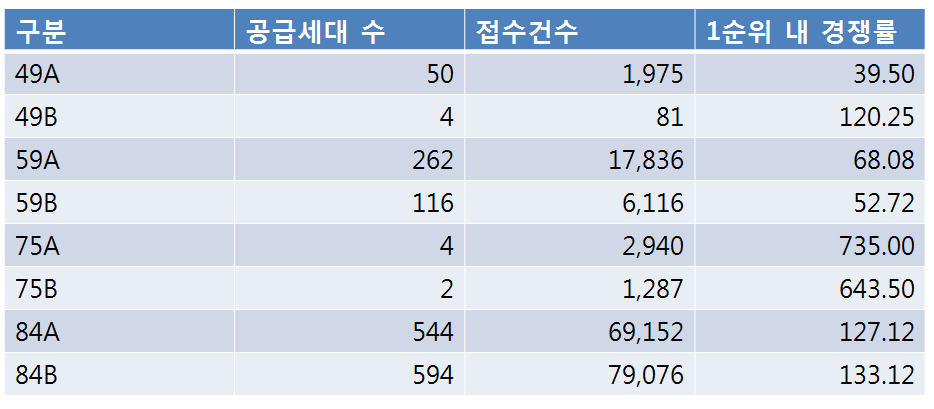 일반공급의 경우는 2순위나 타지역의 경우를 논하는 것이 사실상 무의미하므로 제외하였고, 1순위 내용만 다루기로 한다.