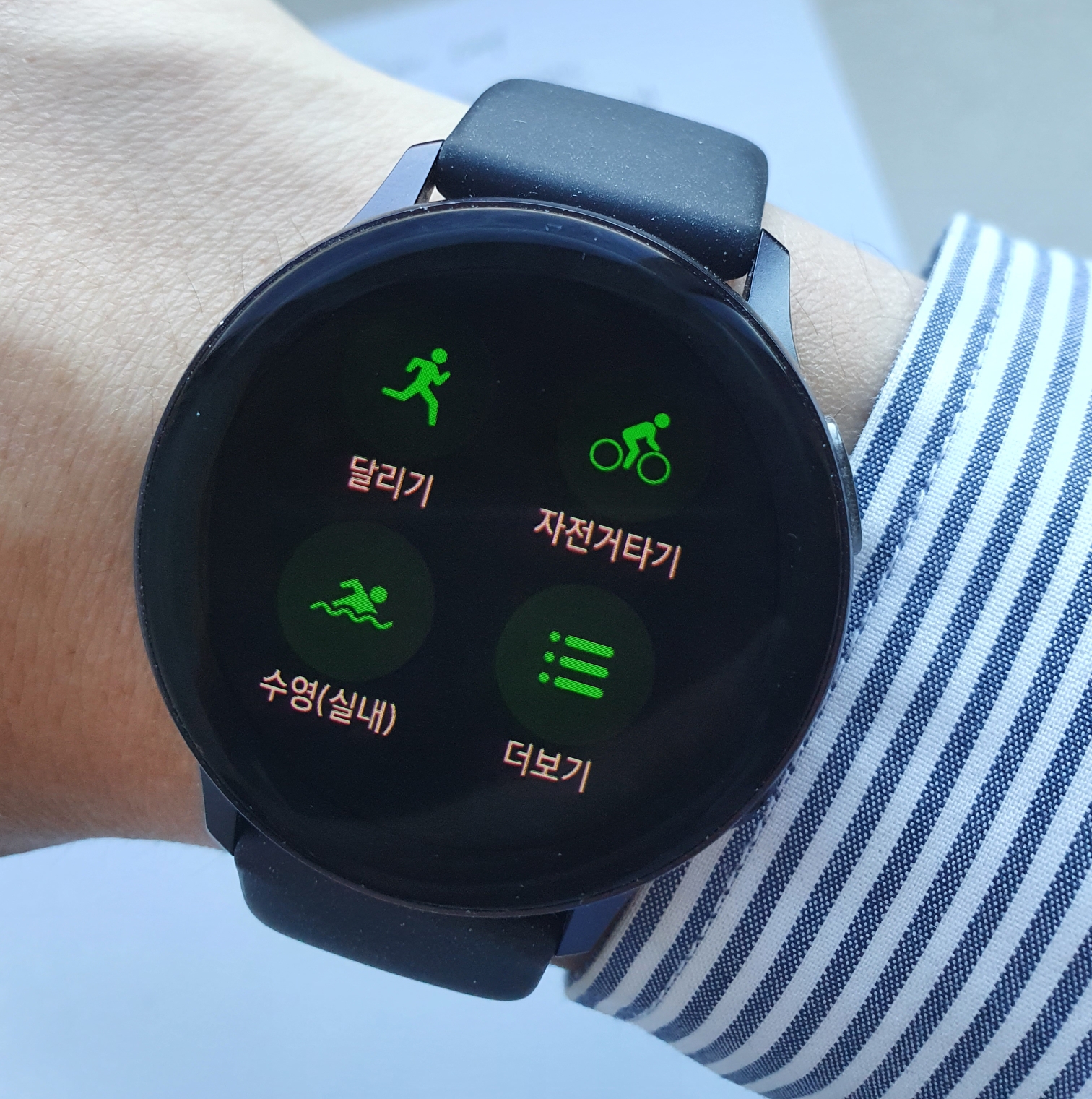 40mm와 44mm가 있다. 다이얼이 크면 사용하기 편하겠지만 나는 팔목이 얇고 운동할 때 거추장스러울 것 같아서 40mm를 선택하였다. 지금도 사용하는데 특별한 불편함은 느끼지 못했다. 내몸 기준으로 시계를 차는 위치의 손목둘레가 17cm이니 구매 시 참고하면 될듯 하다.