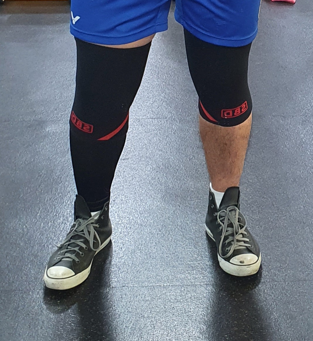 니슬리브를 착용하기 전에 카프슬리브(종아리슬리브)나 하체 전체를 감싸는 기능성의류를 미리 착용한다면 조금 더 수월한 착용이 가능해지니 참고.